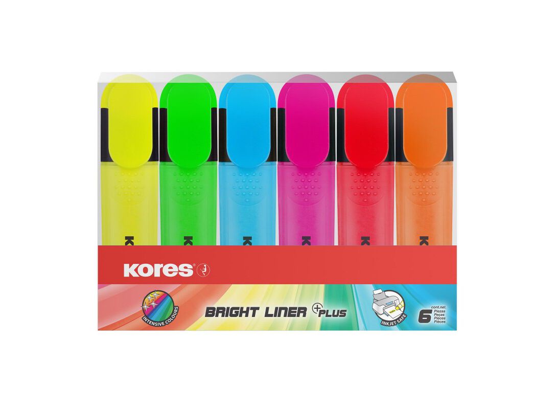 ტექსტ მარკერების ნაკრები Kores BRIGHT LINER PLUS, წაკვეთ. დაბოლ. 1-5 მმ, 6 ფერი