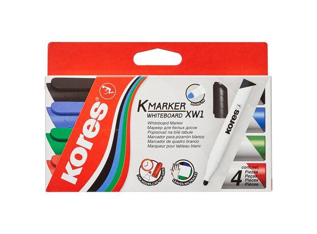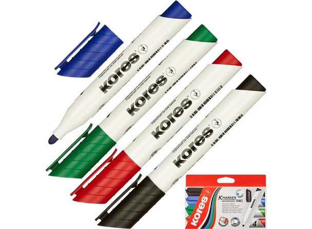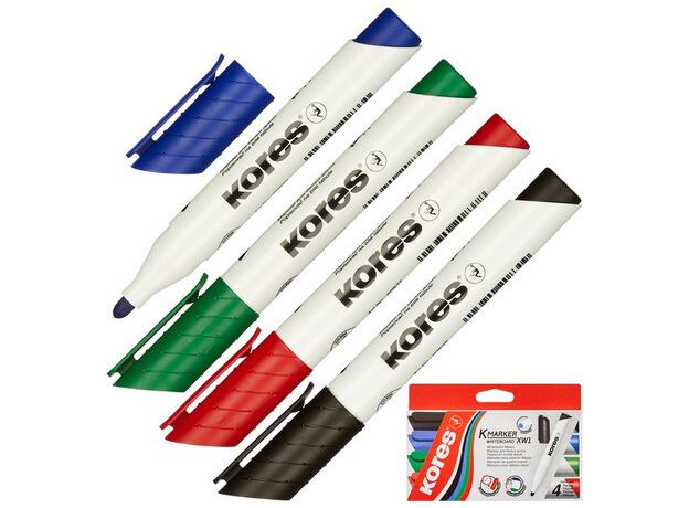 დაფის მარკერების ნაკრები KORES 3მმ 4ც./შეფ 20843