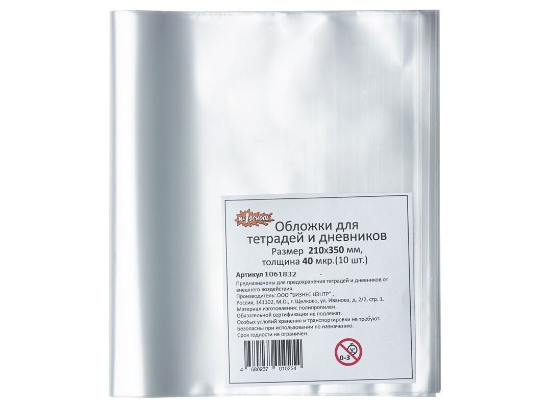 ყდა №1School რვეულებისთვის 210х350, პპ, 40მკმ. 10 ც/შეფ